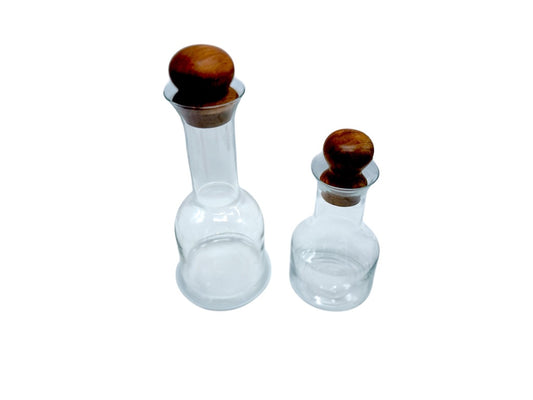 Vintage Dansk Glass & Teak Wood Stoppered Decanters Set Of 2