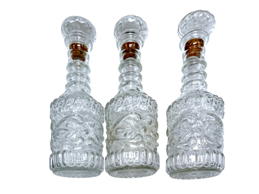 Vintage Jim Beam Clear Glass Tiki Bar Style Decanter Bottle with Cork Set Of 3