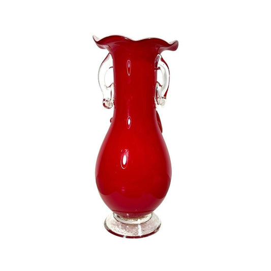Vintage Blown Glass Confetti Flower Red Vase with White Interior Cased Vase