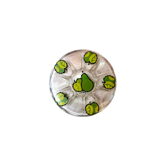 Vintage Mid Century Georges Briard Green Pear and Apples Gold Speckled Signed Glass Platter