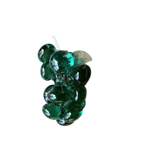 Vintage Green Glass Grape Cluster Figurine With Clear Lucite Leaves