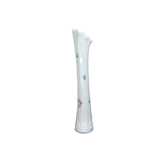 Westmoreland Swung Milk Glass Vase with Hand Painted Pink Roses and Blue Violets